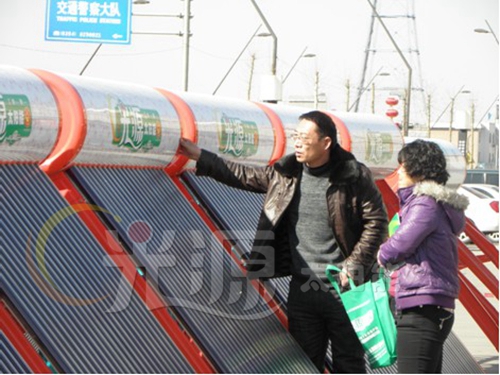 陽光明媚下的晉中是那么引人注目,60多臺(tái)光源太陽能在逸園大酒店廣場(chǎng)展現(xiàn)光源氣勢(shì),引來了四面八方的新老客戶,現(xiàn)場(chǎng)新老朋友對(duì)光源產(chǎn)品質(zhì)量表示了肯定,青花瓷的水箱,紫金波紋集熱真空管,讓新老朋友贊不絕口。