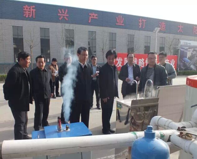 調(diào)研組先后考察了光源太陽能內(nèi)聚光減容太陽能中高溫集熱管、太陽能集熱管全自動數(shù)控五連鍍生產(chǎn)線、反向積放臥式發(fā)泡水箱生產(chǎn)線、超大恒溫熟化室,對光源太陽能中高溫利用項目成果高度評價。來到熱水器車間,看到熱火朝天的忙碌生產(chǎn)場景,全機械化,自動化制桶流水生產(chǎn)線,書記喜笑顏開。走出廠房,在光源開水機系統(tǒng)前,驚訝我公司在中高溫領(lǐng)域取得的成就,贊揚在這一領(lǐng)域光源太陽能已走在行業(yè)前列。聽到董事長李成彬先生對于光源先進的發(fā)展及今后的規(guī)劃,給予了高度的肯定,明確指出光源太陽能給邢臺其他公司樹立了榜樣,走科技創(chuàng)新,自主研發(fā)的路子,前途不可限量。希望光源公司不斷開拓進取,早日上市。