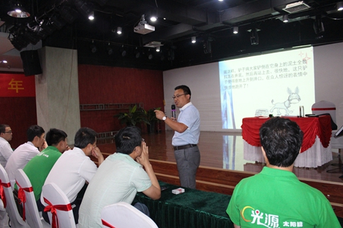 6月份,光源太陽(yáng)能科技有限公司舉辦的銷售培訓(xùn)會(huì),通過(guò)培訓(xùn)會(huì),不但可以加深業(yè)務(wù)人員對(duì)企業(yè)文化和產(chǎn)品的認(rèn)識(shí),而且能夠增強(qiáng)業(yè)務(wù)人員的專業(yè)知識(shí)及技能,更好的服務(wù)于客戶.