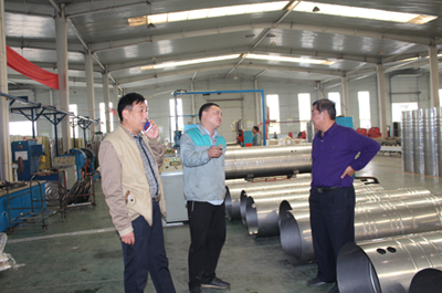 董事長(zhǎng)李成彬在車間指導(dǎo)工作