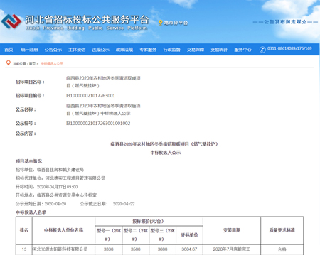 臨西縣2020年農(nóng)村地區(qū)冬季清潔取暖項(xiàng)目